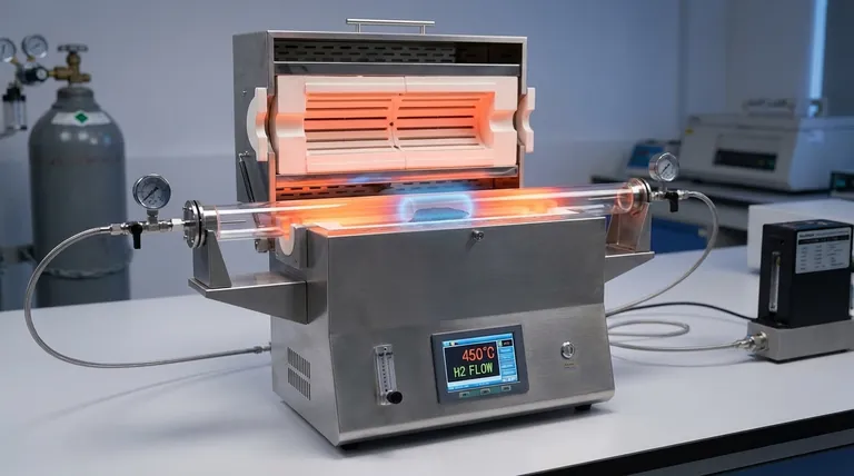 Más allá de la temperatura, el horno tubular asegura un suministro constante de gas reductor, como una mezcla de hidrógeno/argón.