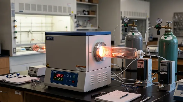 La síntesis de CaS:Eu2+ es muy sensible a las condiciones térmicas. El horno de tubo proporciona un entorno estable de alta temperatura, manteniendo específicamente el material a 1050 °C.