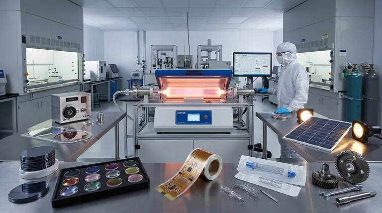 En esencia, la deposición química de vapor mejorada por plasma (PECVD) es una tecnología fundamental para la fabricación de electrónica y materiales avanzados. Sus aplicaciones principales se encuentran en la industria de los semiconductores para la creación de circuitos integrados, pero su uso se extiende ampliamente a células solares, lentes ópticas, embalajes protectores e incluso implantes médicos. La PECVD destaca en la deposición de películas delgadas y funcionales sobre un sustrato.