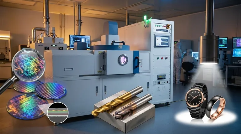 En resumen, la Deposición Física de Vapor (PVD) es un sofisticado proceso de recubrimiento al vacío utilizado para aplicar películas delgadas de alto rendimiento sobre una amplia gama de piezas. Sus aplicaciones más comunes se encuentran en la industria electrónica para la creación de semiconductores, en la industria de herramientas para el endurecimiento de herramientas de corte y para la producción de acabados decorativos duraderos en bienes de consumo como relojes y joyas.