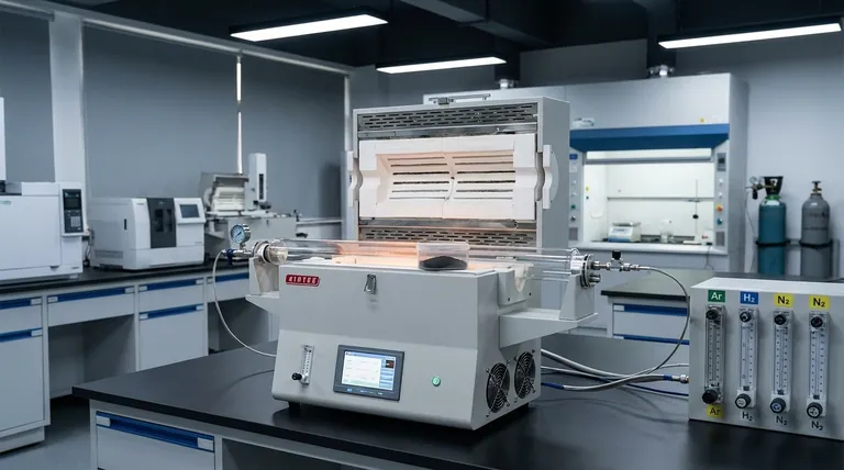 La función principal del horno tubular es manipular la atmósfera de reacción a través de la introducción secuencial de gases. El proceso típicamente comienza con gases inertes para purgar el sistema, seguido de gases reductores cuando se requieren reacciones químicas específicas.