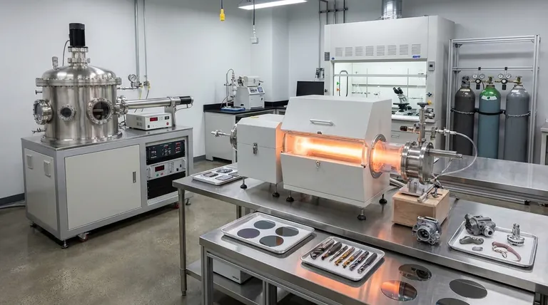 ¿Necesita orientación experta para seleccionar el horno PVD o CVD adecuado para su laboratorio? En KINTEK, aprovechamos una I+D excepcional y fabricación interna para proporcionar soluciones avanzadas de hornos de alta temperatura, incluyendo hornos de Muffle, de Tubo, Rotatorios, de Vacío y con Atmósfera, y Sistemas CVD/PECVD. Nuestra sólida capacidad de personalización profunda garantiza que podemos satisfacer con precisión sus requisitos experimentales únicos, mejorando la eficiencia y el rendimiento. Contáctenos hoy para discutir cómo nuestras soluciones personalizadas pueden beneficiar su aplicación industrial.