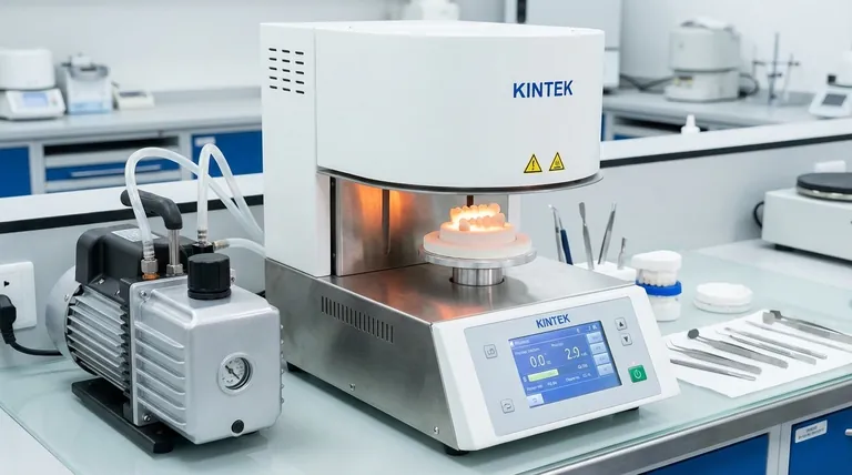 Crear un vacío durante las etapas iniciales de calentamiento elimina el aire atrapado de la porcelana, lo que resulta en una restauración más densa, fuerte y translúcida, libre de burbujas o imperfecciones.