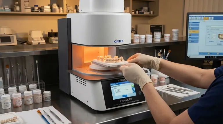 En esencia, un horno de porcelana es un horno de alta temperatura utilizado en laboratorios dentales para transformar materiales cerámicos en restauraciones dentales duraderas y realistas. Su función principal es cocer y sinterizar materiales como la porcelana, fusionando las partículas para crear prótesis fuertes y hechas a medida, como coronas, carillas y puentes, que coincidan con precisión con los dientes naturales de un paciente.