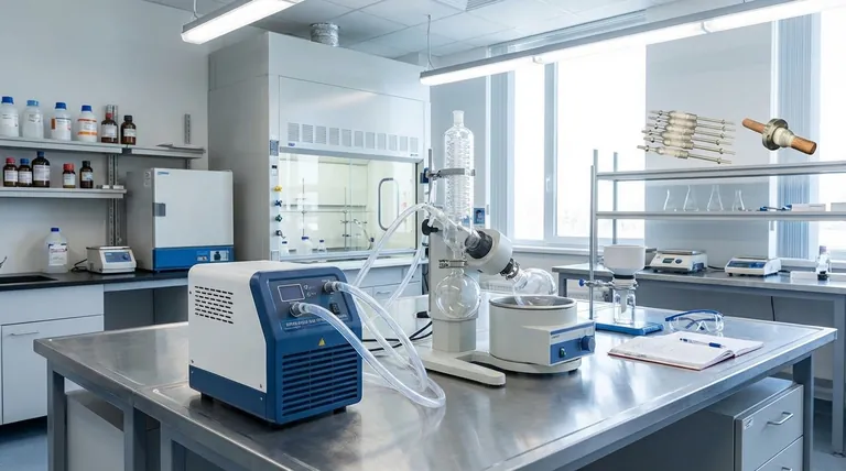La función principal de la bomba es generar un vacío moderado. Esto es esencial para una amplia gama de procesos químicos, incluyendo filtración al vacío, evaporación de solventes con un evaporador rotatorio y destilación a presión reducida.