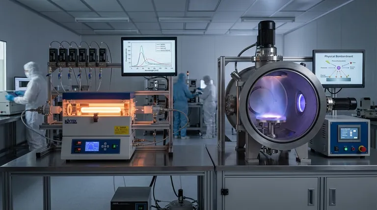 ¿Tiene dificultades para elegir entre CVD y PVD para su laboratorio? KINTEK se especializa en soluciones avanzadas de hornos de alta temperatura, incluidos sistemas CVD/PECVD, hornos de mufla, de tubo, rotatorios, de vacío y atmosféricos. Con I+D excepcional y fabricación interna, ofrecemos personalización profunda para satisfacer con precisión sus necesidades experimentales únicas, garantizando un rendimiento, eficiencia y seguridad óptimos. Permítanos ayudarle a seleccionar y personalizar el sistema perfecto para su proyecto. Contáctenos hoy para discutir sus requisitos.