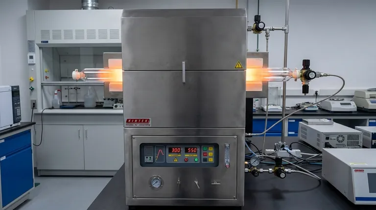 Mientras que los segmentos de temperatura impulsan la reacción, el entorno la protege. El horno tubular debe utilizar nitrógeno en flujo para crear una atmósfera estrictamente inerte.