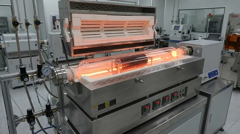 El horno de tubo de cuarzo genera la energía térmica necesaria, manteniendo típicamente un rango de 900 °C a 980 °C.