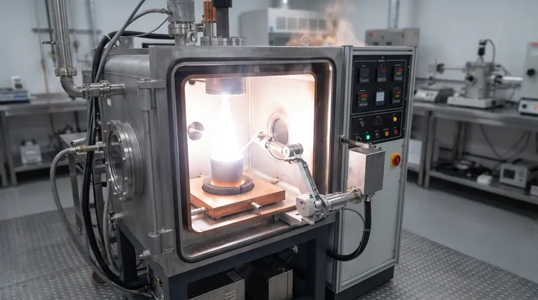 El proceso de síntesis comienza con elementos crudos de alta pureza. El horno utiliza arcos de alta temperatura para someter estos materiales a una intensa energía térmica.