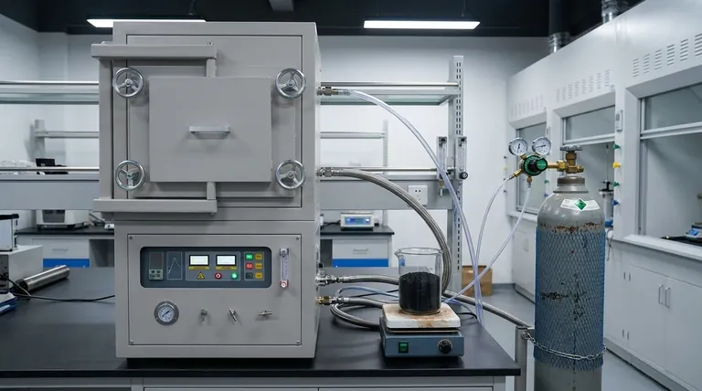 Al entregar un flujo constante de nitrógeno o argón, el sistema asegura que el entorno permanezca inerte, preservando la estructura de carbono para el procesamiento.