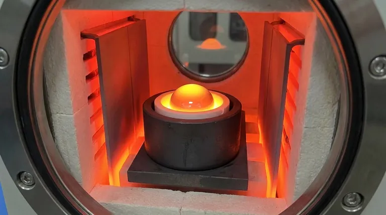 El crisol de grafito no es simplemente un contenedor; es un estabilizador térmico activo que permite la formación de gotitas de aleación hemisféricas precisas al mantener un campo de temperatura uniforme a temperaturas extremas superiores a 1550°C.