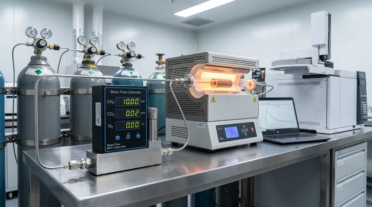 Las reacciones de reformado catalítico dependen en gran medida de equilibrios químicos específicos. Para los catalizadores E-Ni/m-MgAlOx, mantener una relación precisa, a menudo 1:1 de Metano (CH4) a Dióxido de Carbono (CO2), es fundamental.