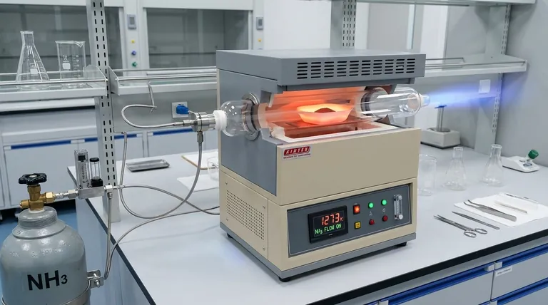 En última instancia, el horno tubular es la herramienta habilitadora que transforma un óxido estándar en un nitruro funcionalizado a través de un control ambiental preciso.